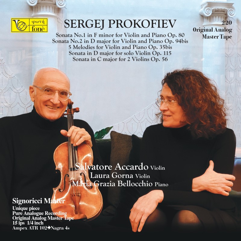 The recording collaboration with the great violinist Salvatore Accardo continues, which began 29 years ago. In this project Maestro Accardo plays with the violinist Laura Gorna and the pianist Maria Grazia Bellocchio. This album contains chamber music by Sergej Prokofiev where the violin is the protagonist: Sonata in do magg. for 2 Violins Op. 56 and Sonata n. 1 in fa min. for Violin and Piano Op. 80.