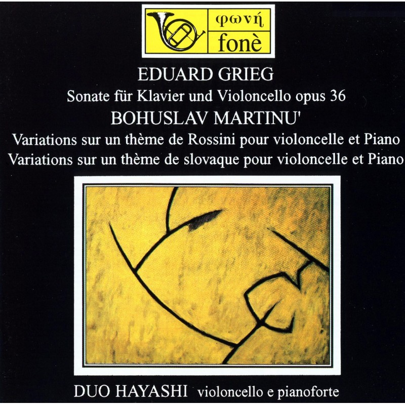 Il disco copre due secoli musicali, l’800 e il ‘900, presentando due compositori che hanno contraddistinto la produzione europea di quel periodo e cioè E. Grieg e B. Martinu due personaggi che hanno in comune la testimonianza di aver vissuto le ultime pagine del Romanticismo tedesco e di averlo inserito più volte nelle proprie composizioni. La sonata per pianoforte e violoncello op. 36 in La minore, vede come artefice Edvard Grieg … musicista norvegese, il quale fu in contatto con le innovazioni che in quel periodo erano presenti, specialmente in Austria con la famosa e mitica scuola di Vienna. Formatosi a Lipsia, fu influenzato dalla cultura musicale tedesca, pur rimanendo legato alla tradizione romantica norvegese. Nella sua produzione cercò di evitare l’adozione di temi poplari della propria terra e per questo motivo elaborò nuovi stili ed orchestrazioni trasparenti ed aderenti ad una realtà della Norvegia “fin de siècle”. Comunque, al di là delle etichette e delle analisi, Grieg diventò il punto di riferimento nella problematica della musica dei secoli XIX e XX. Evitò attentamente le grandi forme sinfoniche, preferendo lavorare di cesello sulla musica cameristica, la quale offriva delle sensazioni più complete. Il suo mondo nordico era vissuto in modo particolare, arricchito da un romanticismo discreto che dava un gusto alternativo alla musica ottocentesca. Nella presente sonata, scritta nel 1882-83, troviamo tutto il mondo di Grieg, vasto ed ormai maturo. Il dualismo fra il pianoforte ed il violoncello è di grande efficacia, poiché nella ricerca tematica di colori e di sonorità particolari, è possibile rivedere, nella mente, i dipinti di Renoir. La tonalità minore fu una delle sue preferite ed il modo minore è l’aspetto ideale per cogliere le immagini soffuse della sua terra. Il fattore più importane che domina tutto il brano fu il continuo spunto melodico. Specialmente nella parte centrale, il discorso diventa più articolato, cogliendo un legame con il mondo schumanniano. Il lavoro è articolato in modo ampio e ben riuscito dal punto di vista formale, arrivando a svincolarsi dal solito quartetto musicale, da tutti sottolineato come una delle prerogative di Grieg. Infine, la raffinatezza degli interventi del compositore, il quale è riuscito a creare una pagina importante e quanto mai di qualità. Al di là delle etichette e degli stili, Martinu rimane un importante punto di riferimento nella musica europea fra ‘800 e ‘900 ed il brano presente ripercorre le tappe di un passato musicale che vede come protagonista il mitico Rossini. La scelta di comporre le due variazioni su in tema rossiniano sottolinea l’amore del compositore boemo per una letteratura italiana fra il ‘700 e l’800. Inoltre, il musicista pesarese si adatta moltissimo alla filosofia di Martinu, poiché egli riesce a rilevare l’essenza del discorso rossiniano cogliendo l’ironia e la tristezza che stanno alla base di ogni composizione. Il prodotto che esce da questa operazione è molto interessante, infatti la cultura slava di Martinu si diluisce con la cultura mediterranea di Rossini, coinvolgendo in questo caso aspetti nuovi ed originali. Perciò, il gusto melodico di stampo spiccatamente italiano si avvale di un’armonia sofisticata ed equilibrata, colorando il brano di immagini ironiche e popolaresche. L’importante di questa composizione trova la sua sintesi nell’abbinamento sopracitato, poiché Martinu pur rispettando i temi rossiniani, plasma, sutura e giustappone cellule tematiche della sua terra usando una discrezione che gli fa onore. Nelle: variazioni su un tema slovacco, di Bohuslav Martinu, ancora una volta il romanticismo tedesco è di scena, infatti il compositore, dopo aver riconosciuto le correnti musicali parigine del primo dopoguerra, trovò il proprio stile, basato su un’utilizzazione di motivi folkloristici che rappresentavano la realtà della propria terra. Amante di Mozart e di tutto il mondo classico, ebbe come punto di riferimento un collegamento fra il mondo boemo e spunto atonali e politonali. Una formula che creava l’esatta statura del musicista. Anche uno spiccato gusto impressionista, legato alle danze ed ai ritmi jazzistici, lo inserì in un mondo aperto alle innovazioni e alle nuove conquiste culturali. Nella sua musica si colgono numerosi aspetti stilistici, mancando però un neoclassicismo stravinskiano. Un fatto strano, poiché la sua attenzione era tesa ad ogni tipo di sollecitazione esterna. Nel brano sono presenti tutti questi elementi ed in più si nota uno “spaccato” del mondo boemo, ricco di tradizioni e di un virtuosismo, che si finalizza in un intenso dialogo fra due strumenti che possono vivere di luce propria. La linea melodica è molto intensa e particolarmente lirica e qui la carica strumentale alterna attimi di grande suggestione ad istanti morbidi e di profonda meditazione. Martinu tratta il violoncello in modo classicheggiante, giocando sulle sonorità gravi, fino a raggiungere vette di uno spumeggiante virtuosismo, sempre legato ad un fantasioso filo rosso, conduttore di tutto il discorso musicale.
